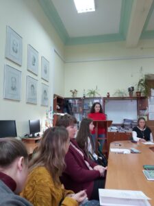 Студентка Брайчук Тетяна навела цілу низку прагматично-маркованих прикладів із газети «Нью-Йорк таймс» (англ. “The New York Times”), які негативно репрезентують комунікативну практику українського політика. З проблемою комунікативної інтенції, скерованої на регулювання міжособистісних стосунків у романі «Великий Ґетсбі» (англ. “The Great Gatsby”) Ф.С. Фіцджеральда, пов’язаний виступ студентки Руданець Христини. Аспектам міжкультурної комунікації, етноцентризму та стереотипам, що базуються на понятті ‘культурної чутливості’ до інших націй та народів у романі «Серце пітьми» (англ. “The Heart of Darkness”) Джозефа Конрада присвячена доповідь Варфоломеєвої Юлії. Доповідь про расові упередження, такі як розумова і духовна зверхність, дискримінація й сегрегація ‘білих’ по відношенню до ‘чорних’, що виразно відображені у творі Гарпер Лі «Убити пересмішника» (англ. “To Kill a Mockingbird”), виголосила студентка Годик Богдана.