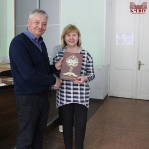 За внесок у розвиток наукової діяльності університету Сергій Анатолійович вручив Почесну грамоту та символічний подарунок заступнику декана факультету іноземної філології з наукової роботи та міжнародних зв’язків Ользі Шаповал.